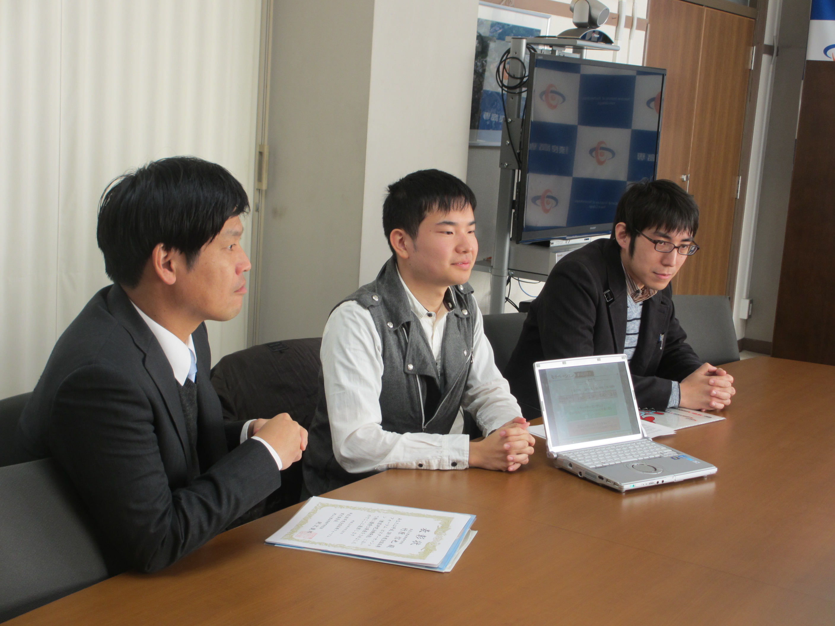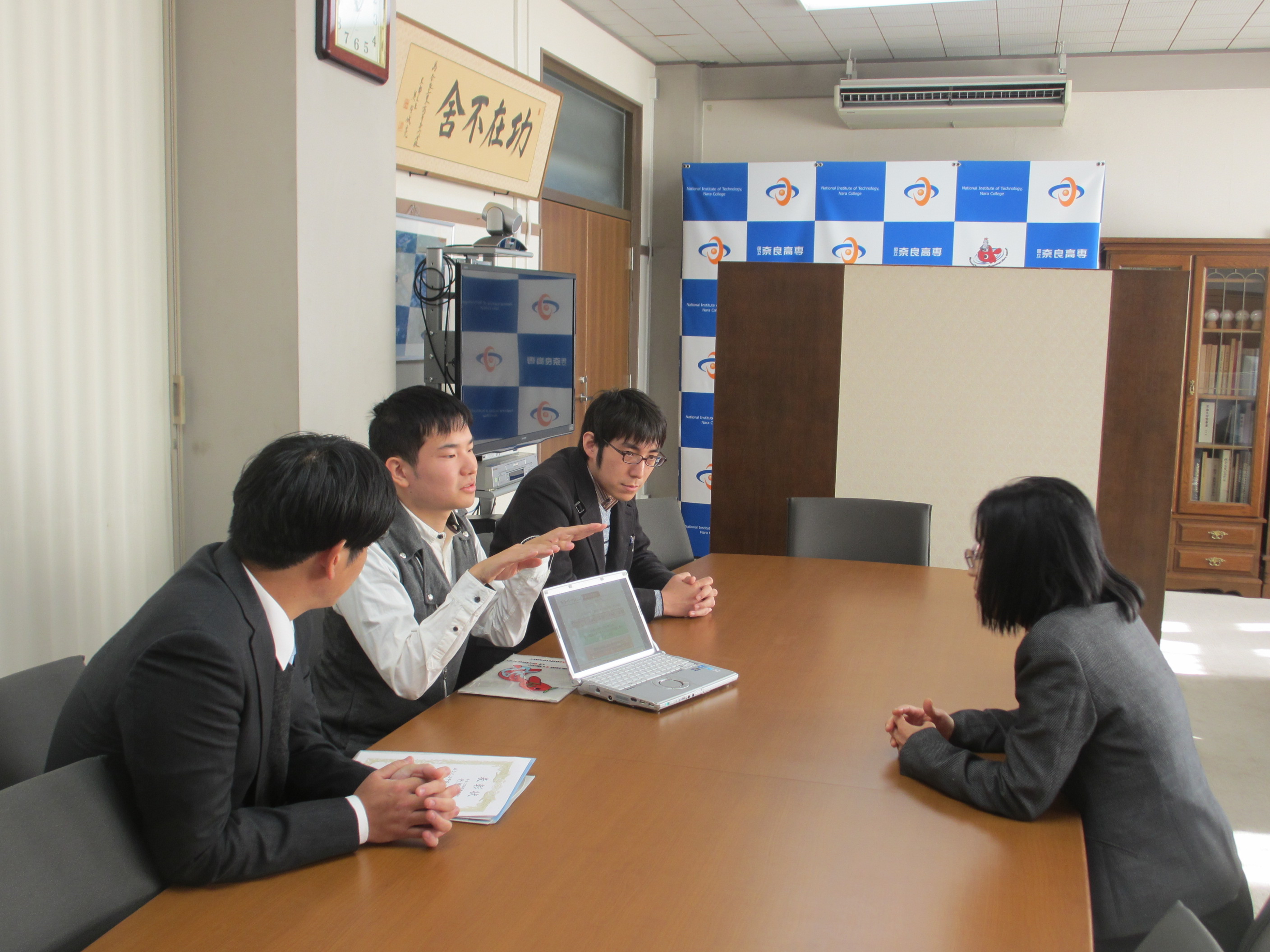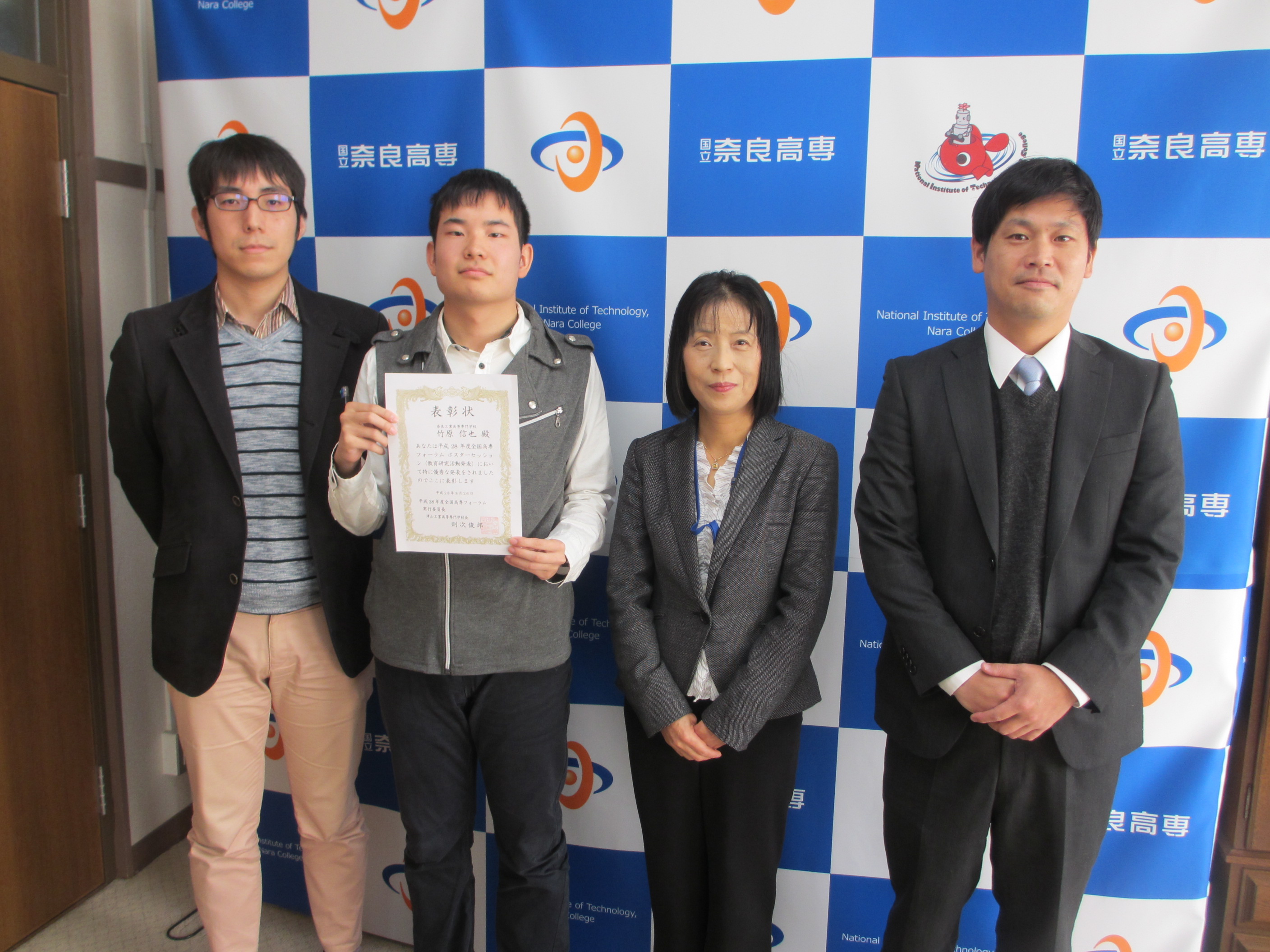 この度、共著で発表していただいた竹原先生が高専フォーラムで優秀発表賞を受賞され、校長室で表彰の機会をいただきました。私自身、1人でも多くの方に研究成果を知ってほしいと思っていたので、ポスター発表をされるというお話をお聞きした時は非常に嬉しく思いました。