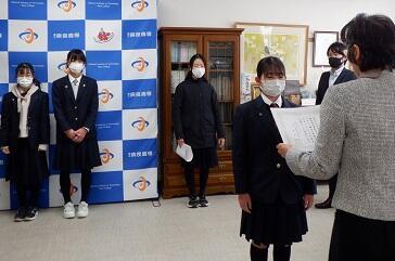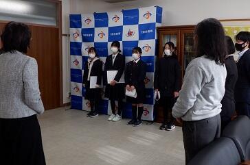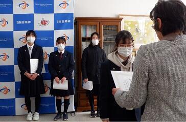 表彰式では、近藤校長から受賞した4名に表彰状が授与された後、入賞した読書感想文の内容に触れ、4作品に共通する印象や共感した点などの感想を述べられ、受賞者は先生のお言葉に熱心に耳を傾けていました。表彰式は終始、和やかな雰囲気のまま幕を閉じました。